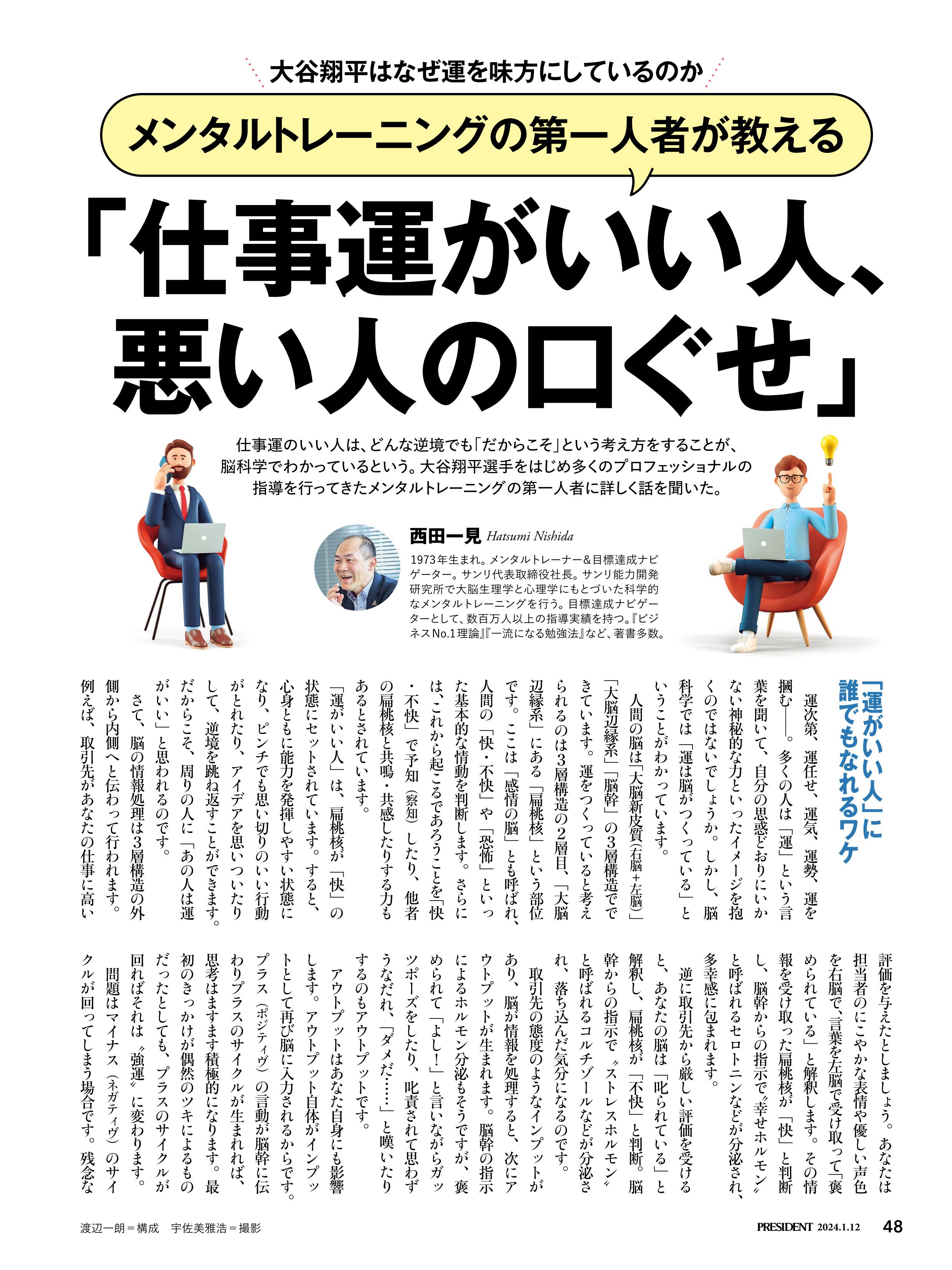 プレジデント『新年特別号』2024年1.12号 (発売日2023年12月22日) に弊社社長西田一見が掲載されました